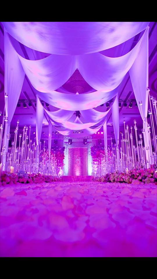 Sắc tím thời thượng đại diện cho sự thủy chung sắc son. Tiệc cưới màu tím vừa mang dáng dấp của sự hiện đại, tinh tế vừa như bức vẽ của câu chuyện cổ tích và cô dâu là nàng công chúa bước ra từ bức tranh ấy.